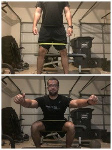 The easier way is turn on the hips externally rotator and abductors helping to stabilize the knee, which mean the feet standing position will be in “V” shape, knee pointing onward. The other way is squat with resistance band. We use a resistance band around our knees while we are doing squat. We apply a force that would try to push the knee further out. Our body will fight to keep the knees pointing onward to correct the wrong pose during a squat.